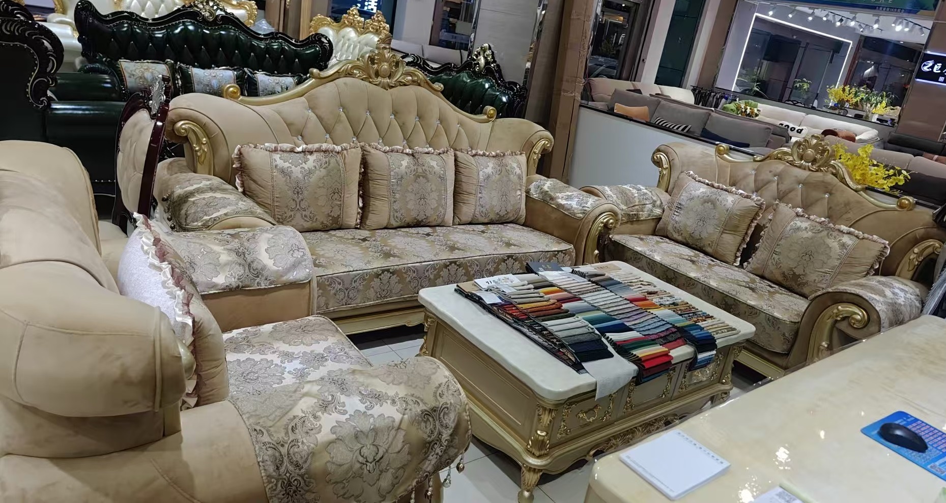 European Luxury Sofa Set – 1+2+3 Seater Bring timeless elegance into your living room with this European-inspired sofa set, crafted with ornate golden detailing and premium upholstery. Designed for both style and comfort, this set makes a stunning centerpiece for any home. ✅ Key Features Design: Classic European style with intricate carved golden frame and elegant floral patterns Material: High-quality fabric upholstery, soft to touch and durable for long-term use Comfort: Thick cushioned seats and supportive backrests with matching throw pillows included Frame: Solid wood structure for stability and strength Style: Luxurious, regal, and sophisticated – perfect for formal living rooms or upscale interiors 📐 Sizes Included 1-Seater (Armchair): Compact and comfortable for personal relaxation 2-Seater (Loveseat): Ideal for couples or smaller spaces 3-Seater (Sofa): Spacious design for the whole family 🎨 Colour & Finish Shown in champagne gold with floral fabric Custom colours and finishes available upon request ✨ This sofa set is the perfect combination of luxury, comfort, and durability, making it a standout feature in any elegant home.