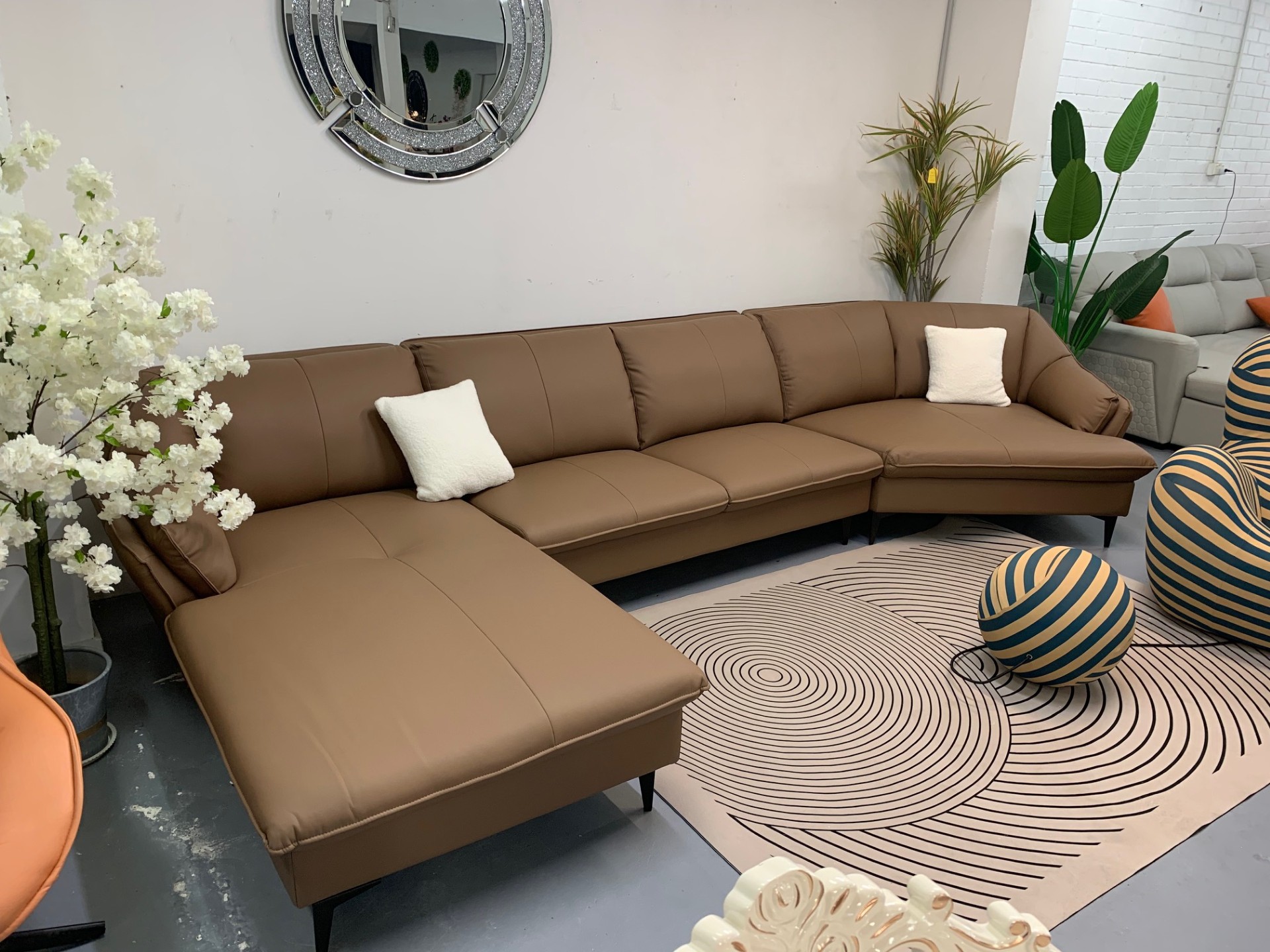 Discover the ultimate in luxury and comfort with our latest Italian-designed L-Shaped Corner Lounge Suite. Featuring genuine leather on all seating areas, armrests, and backrests, this elegant sofa combines style with durability. The non-seating areas are crafted from high-quality, matching artificial leather, providing a seamless and cohesive look. This modern lounge suite is designed with an extended chaise for extra lounging space, offering the perfect combination of style and relaxation. The contemporary Italian design and ergonomic structure ensure it’s not just a statement piece but also incredibly comfortable for daily use. Key Features: Genuine leather on all seating areas, armrests, and backrests Matching color artificial leather on non-seating areas Modern L-shaped design with an extended chaise for relaxation Sleek Italian design, perfect for any contemporary living room Spacious seating for family and guests Durable construction for lasting support and comfort Bring home the sophistication and comfort of this Italian-designed corner lounge suite, perfect for elevating the look and feel of your living space.